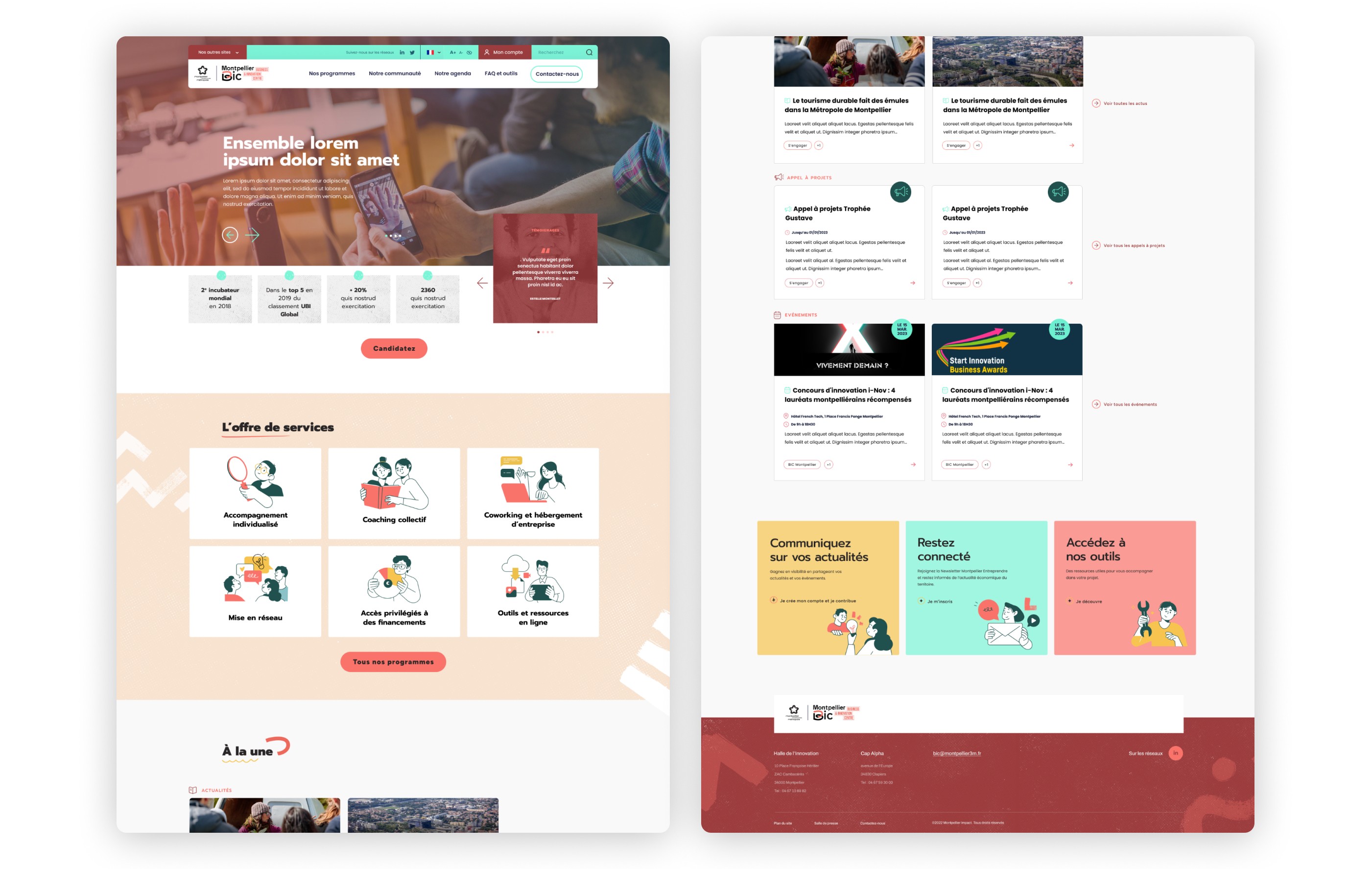 Pour soutenir son développement économique et l’emploi local, la Métropole de Montpellier a créé Montpellier Impact, BIC, Entreprendre et MedVallée. Nous avons conçu un écosystème de logos et de sites interconnectés, unifiés par une structure commune et des Design Systems adaptés à chaque charte.